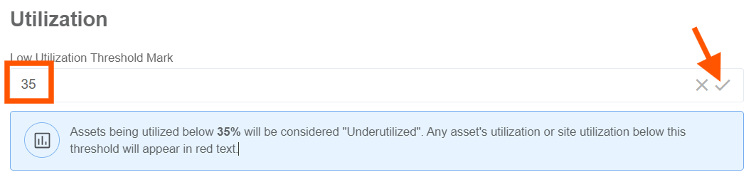 - Adjust the Low Utilization Threshold Mark field to fit your company's needs. Then, click the check mark to complete.