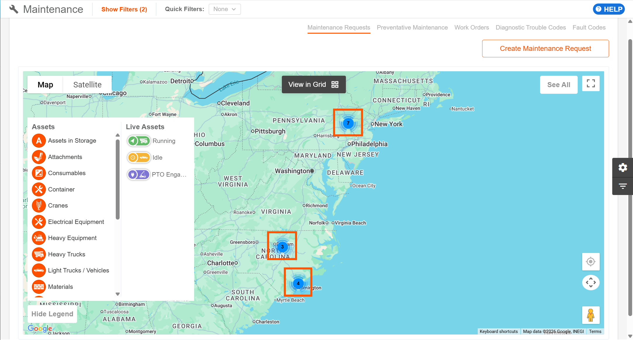 - The map will show all Maintenance Requests as filtered on the previous grid.