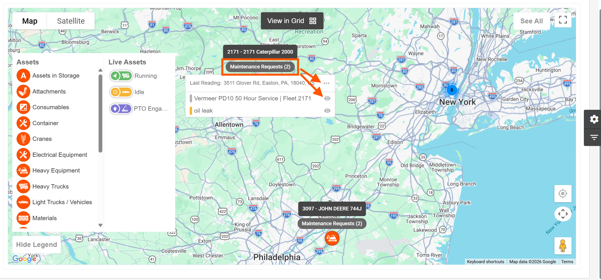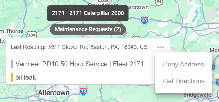 As you zoom into the map, you will see Assets pop up with the number of Maintenance Requests below them.