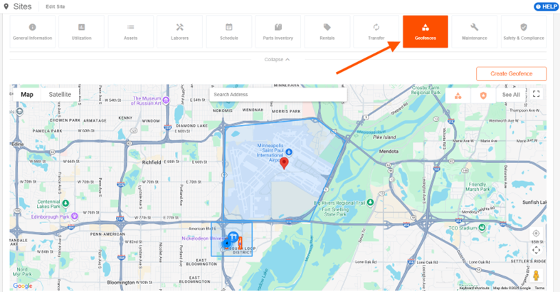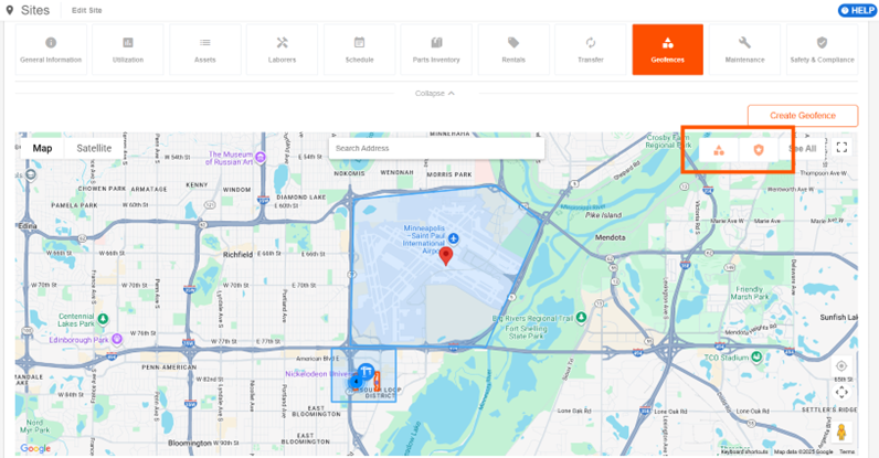 This will open a Map View of all Geofences or Security Perimeters associated with the Site.