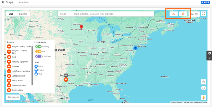 Pro Tip! Click the shapes icon on the top right of the Map to show or hide existing Geofences.