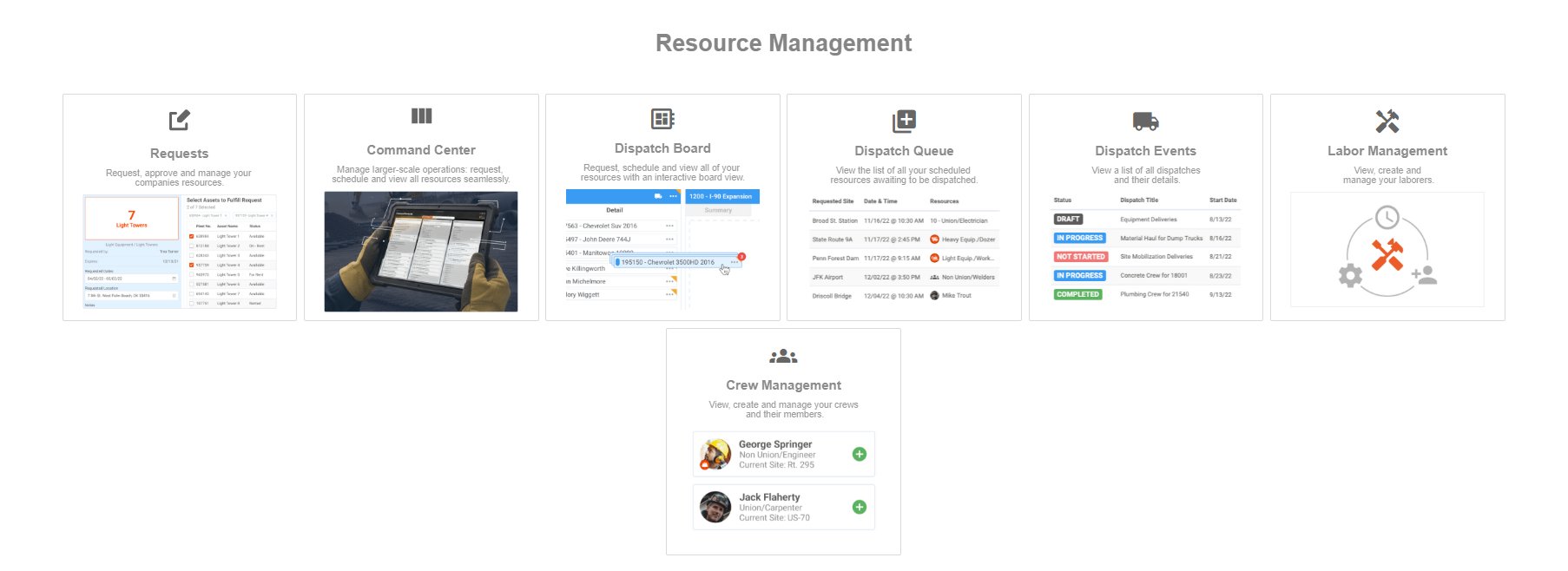 Dispatch Command Center works hand-in-hand with Resource Management. While Resource Management is where your team defines and tracks what's needed across your jobs, Dispatch Command Center is where those needs become action, giving dispatchers the tools to plan, assign, and move resources across your sites in one place.