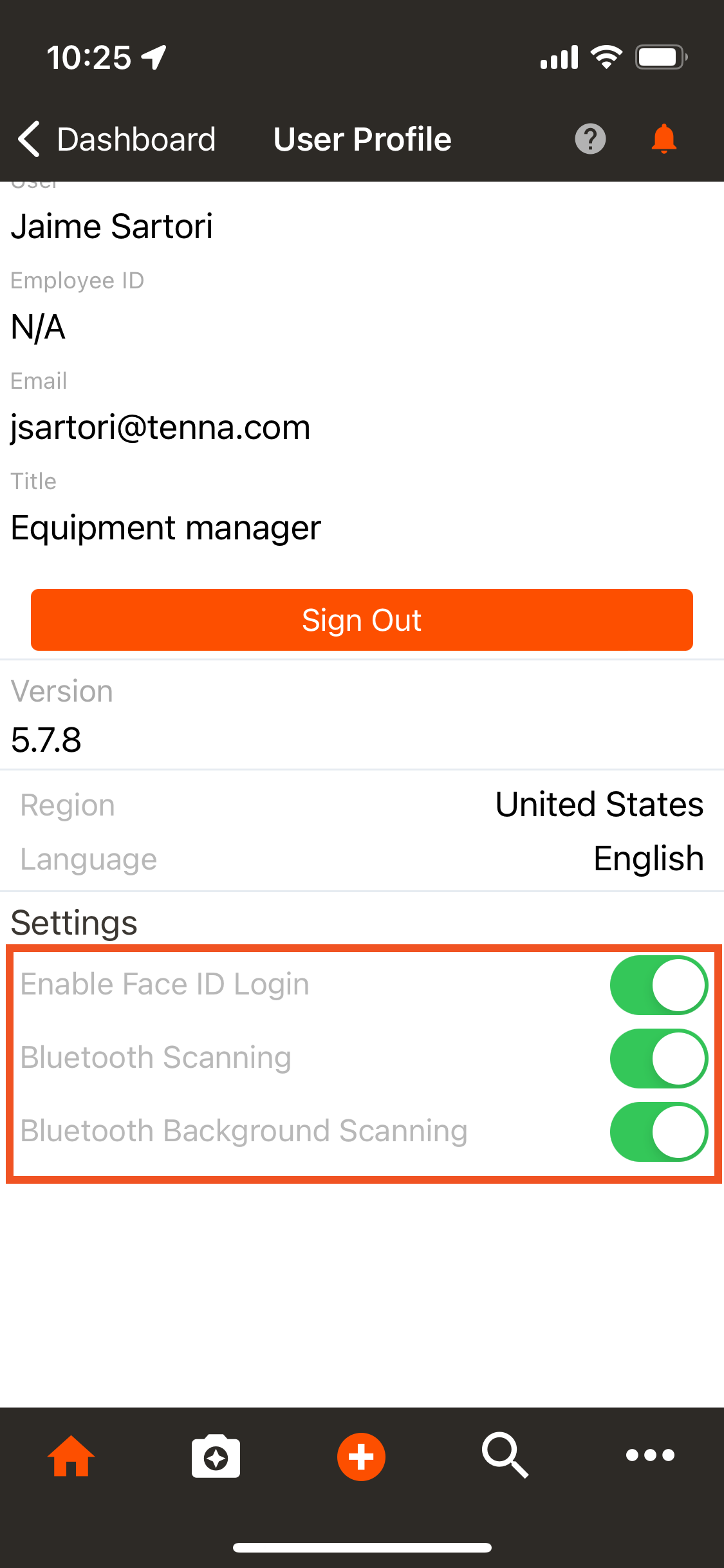 - In the Tenna App, go to Settings and enable Bluetooth Scanning and Bluetooth Background Scanning.