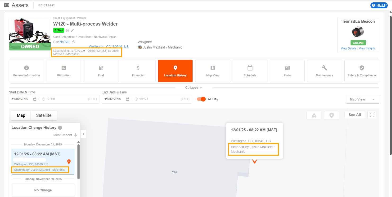 Yes, if the tracker was scanned by a mobile device, the user's name will be listed. If a TennaINTEL tracker scanned the tracker, it will show as N/A for scanned by.