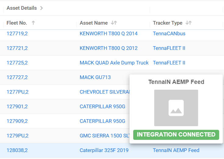 Important! Assets with an active OEM integration will show TennaIN AEMP Feed as the Tracker Type.