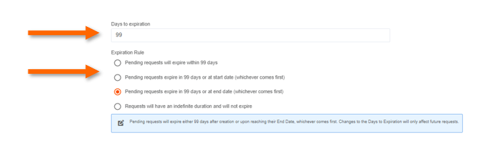 - Set the number of days a request can remain open before it expires, meaning it has not yet been approved or denied.