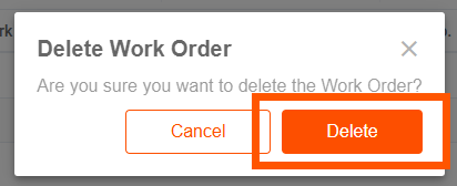Important! Deleting a Work Order cannot be undone and the deleted Work Order cannot be recovered.
