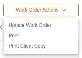 Note: Depending on the status of the Work Order, the "Update Work Order" button may be located in a Work Order Actions dropdown menu.
