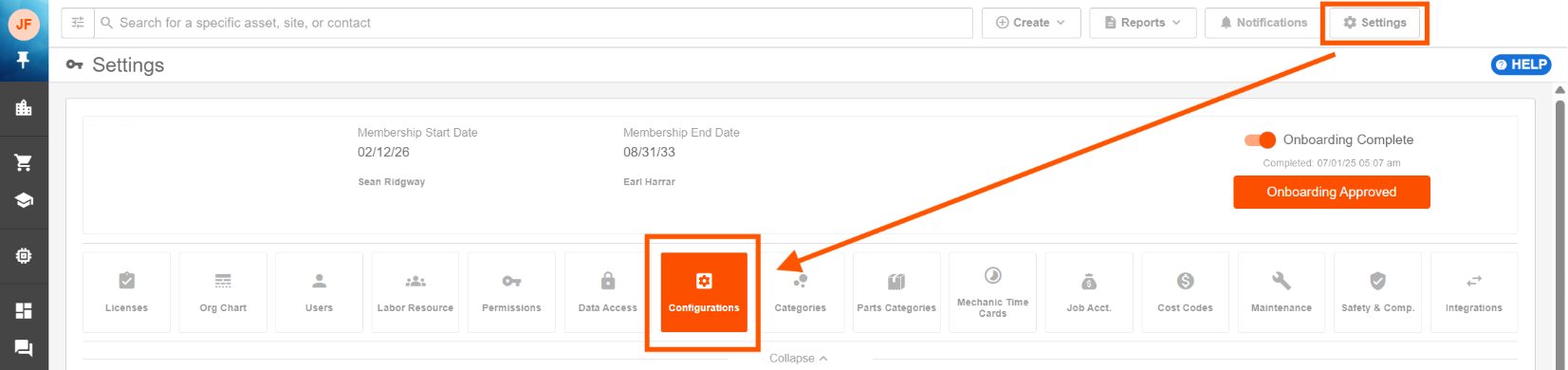 - Click Settings, then the Configurations tab.