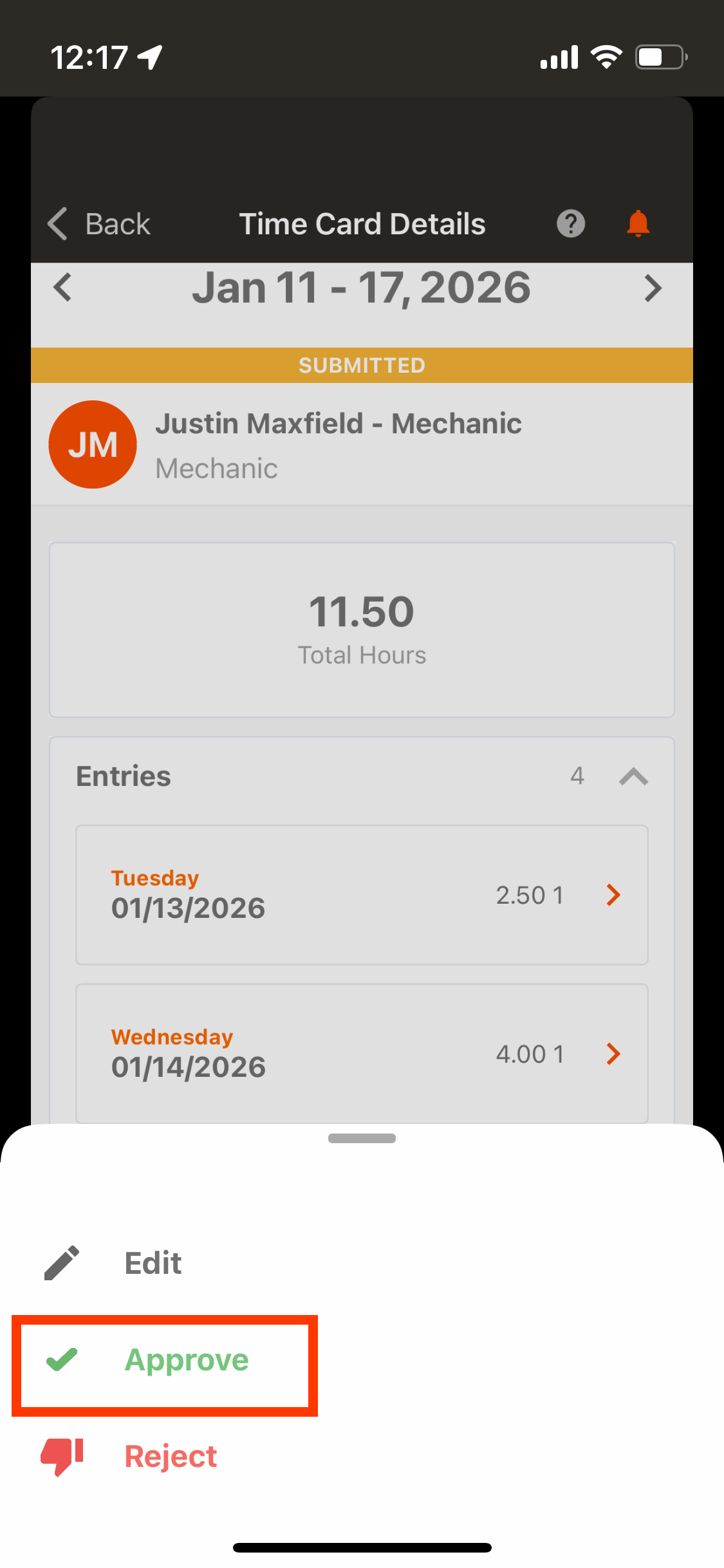 How to Approve or Deny a Mechanic Time Card (App)