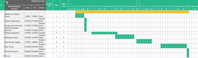The timeline is an average of 30-50 days beyond kickoff. The following example assumes the activity starts the first of January 2023 and extends for 48 days.