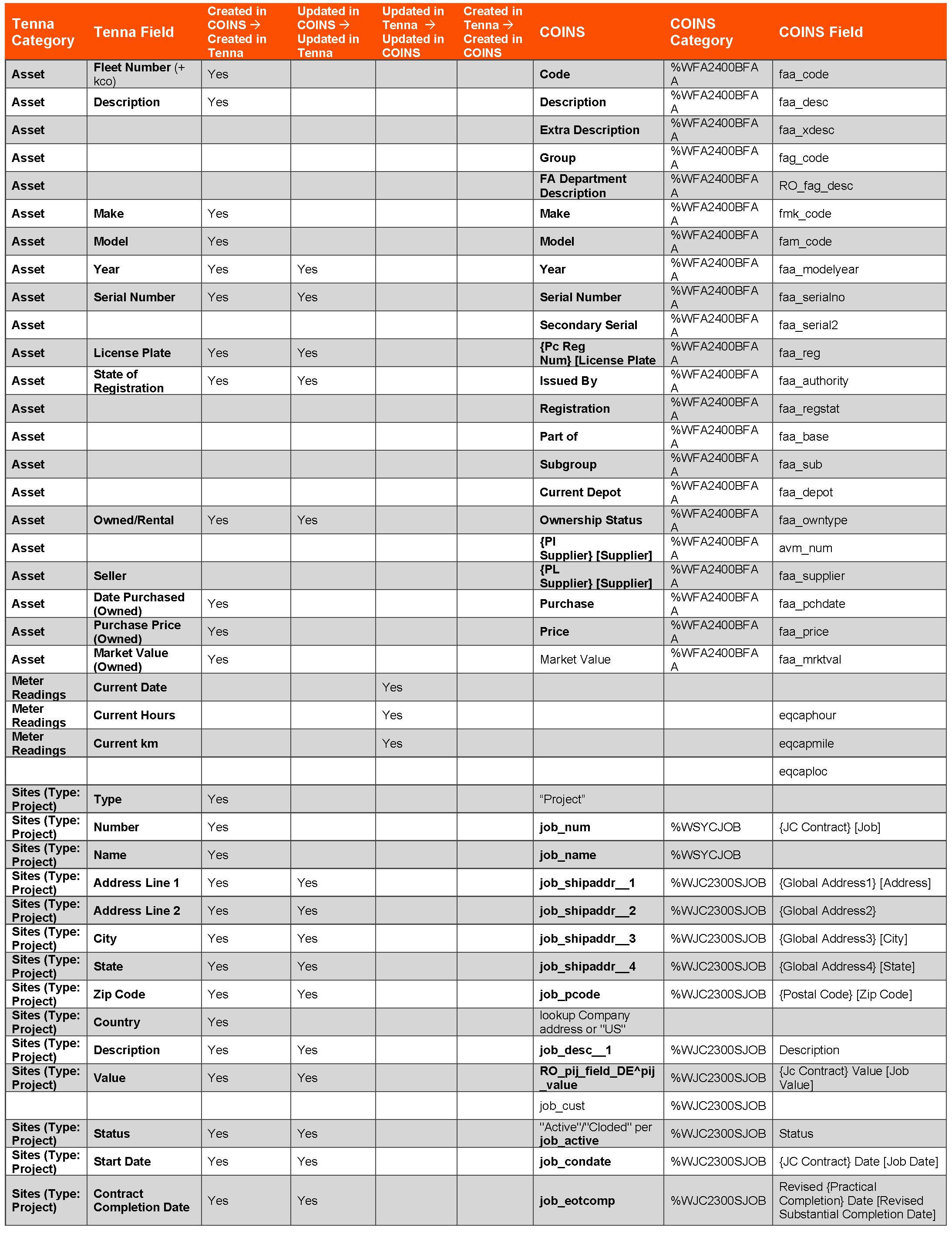 IMPORTANT! Any information from COINS will overwrite the existing information in Tenna for the fields in the Field Mapping tables below.