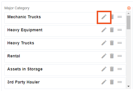 NOTE: A "Category Type" of an existing category cannot be changed. If the category type is incorrect, a new Major Category must be created.